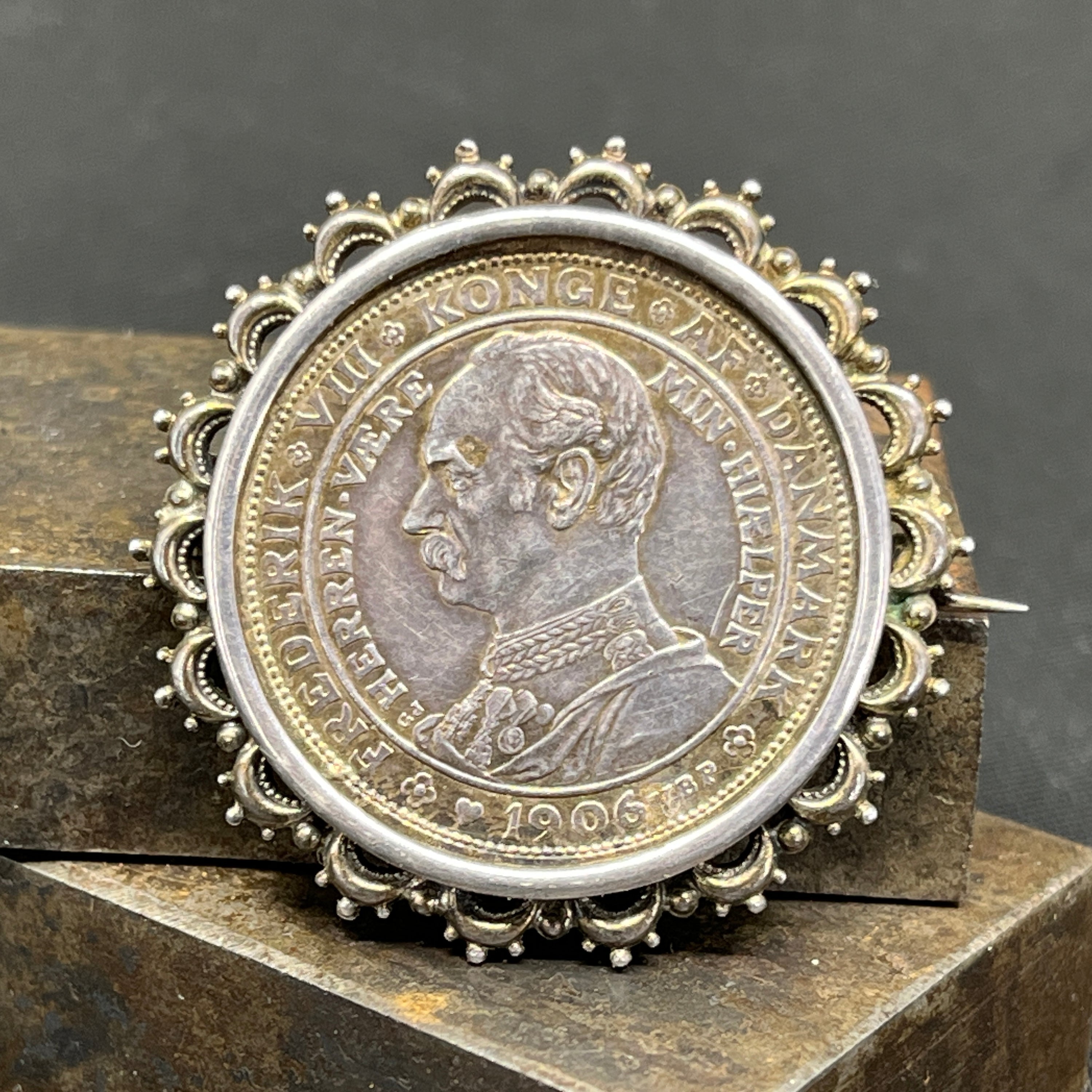 Broche af mønter fra 1870'erne