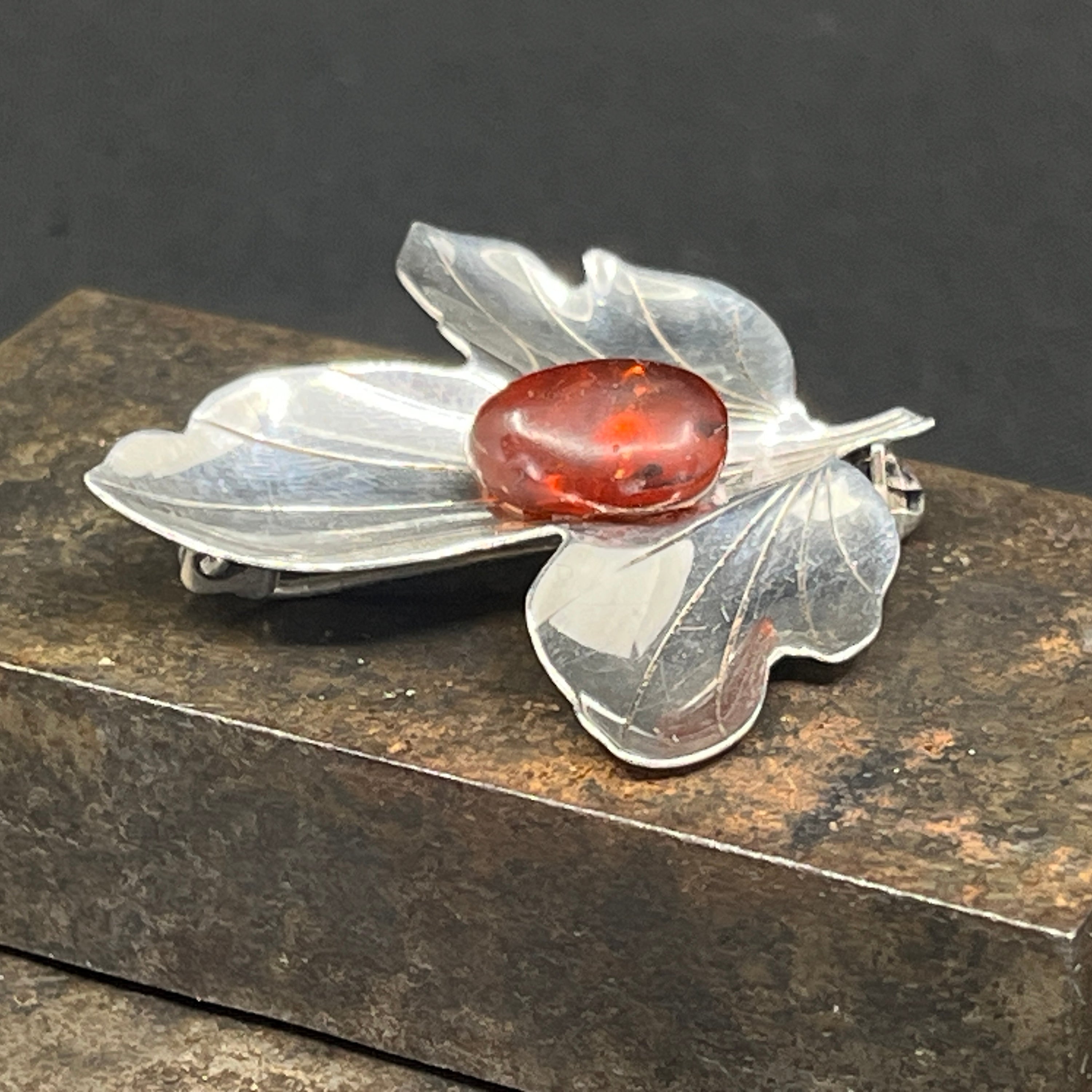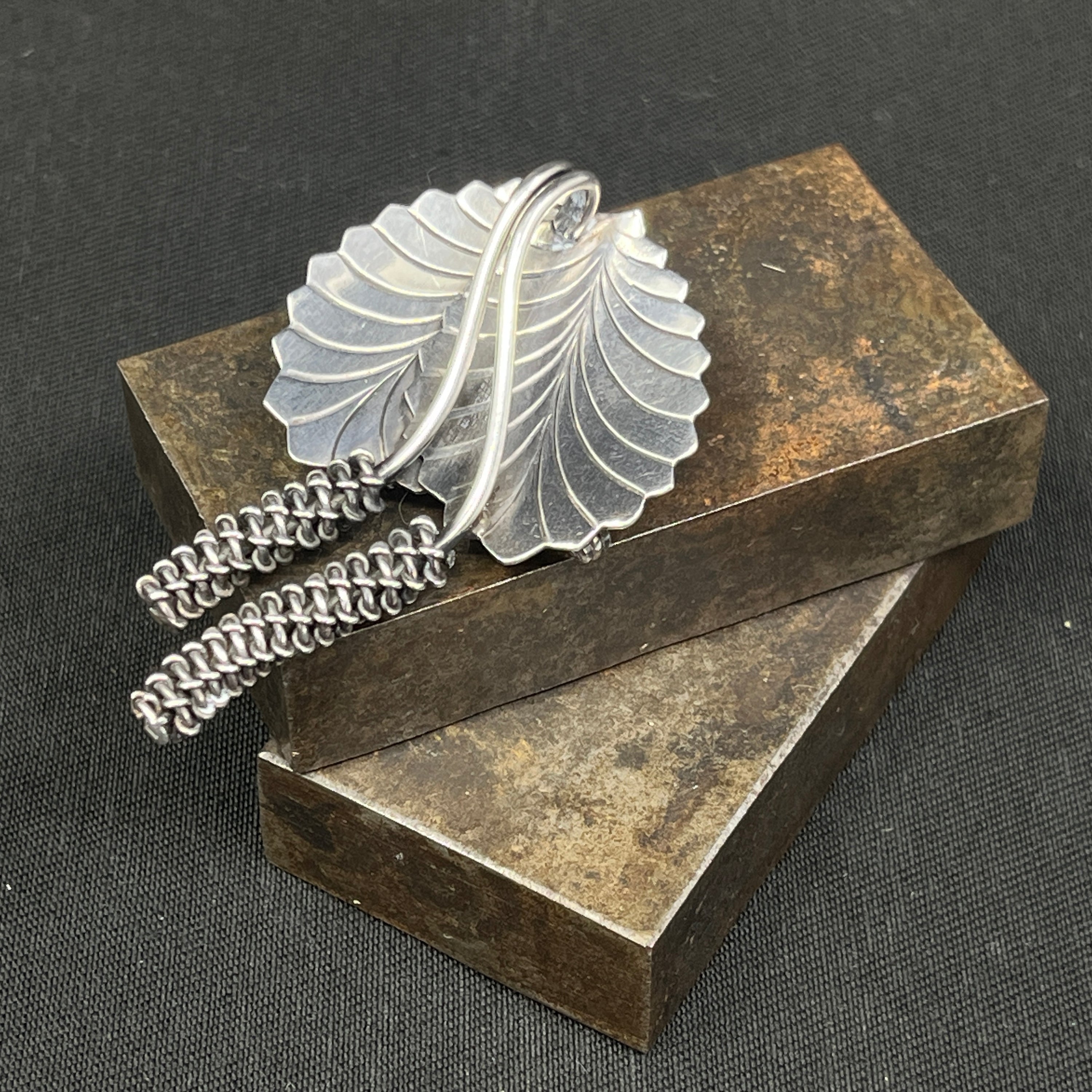 Blad-broche i sølv fra 1950'erne
