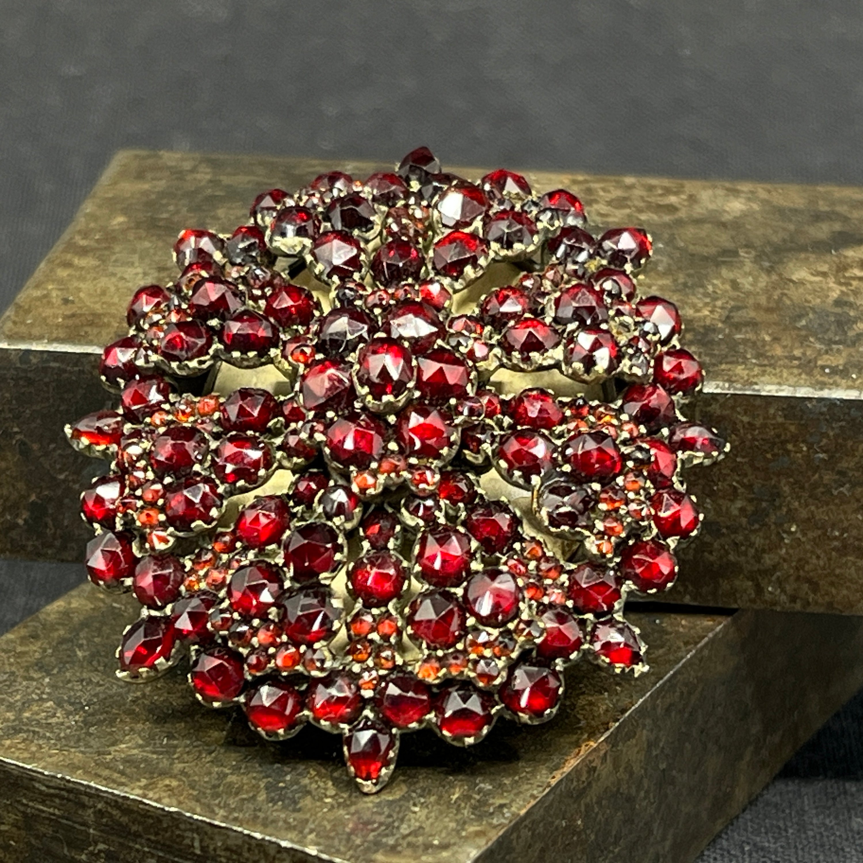 Oval broche med granater