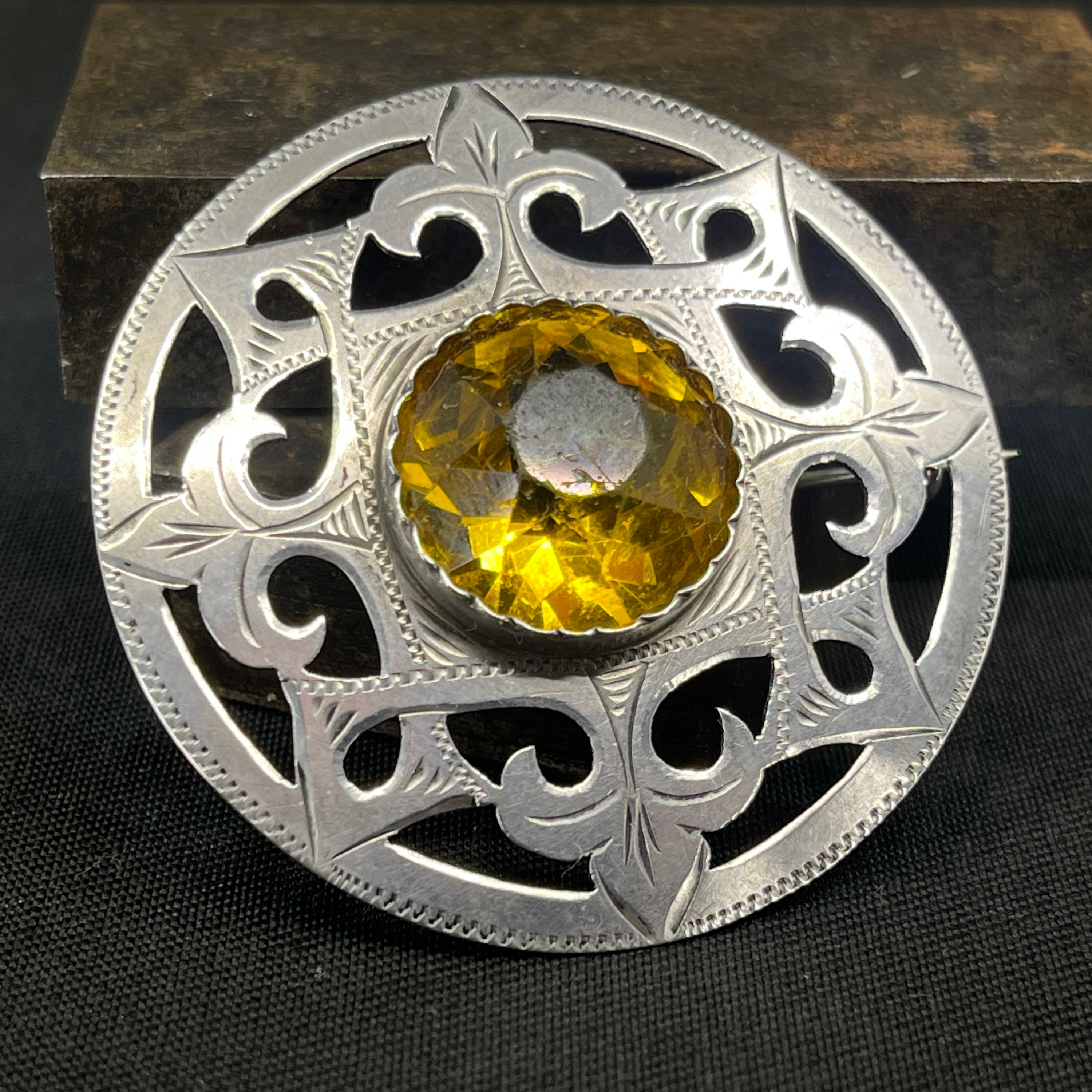 Broche med gul sten