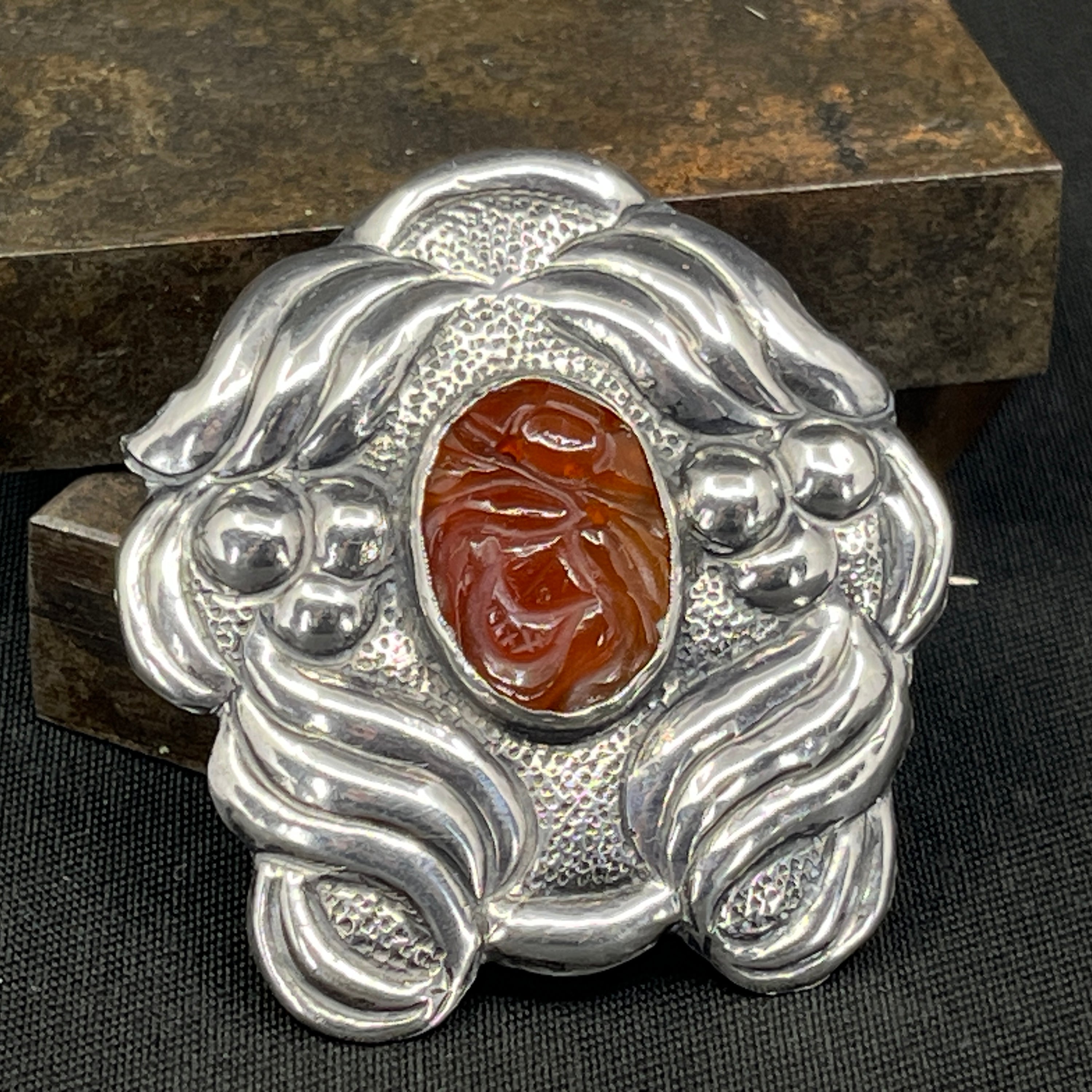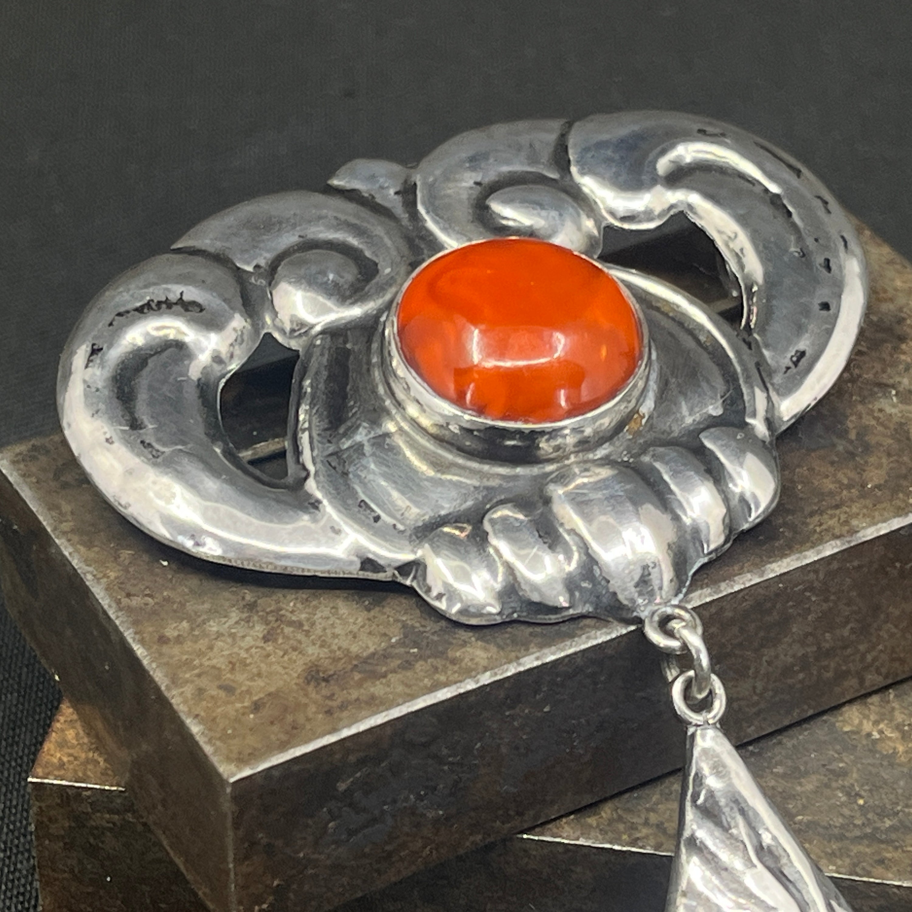 Dansk skønvirke broche med karneol