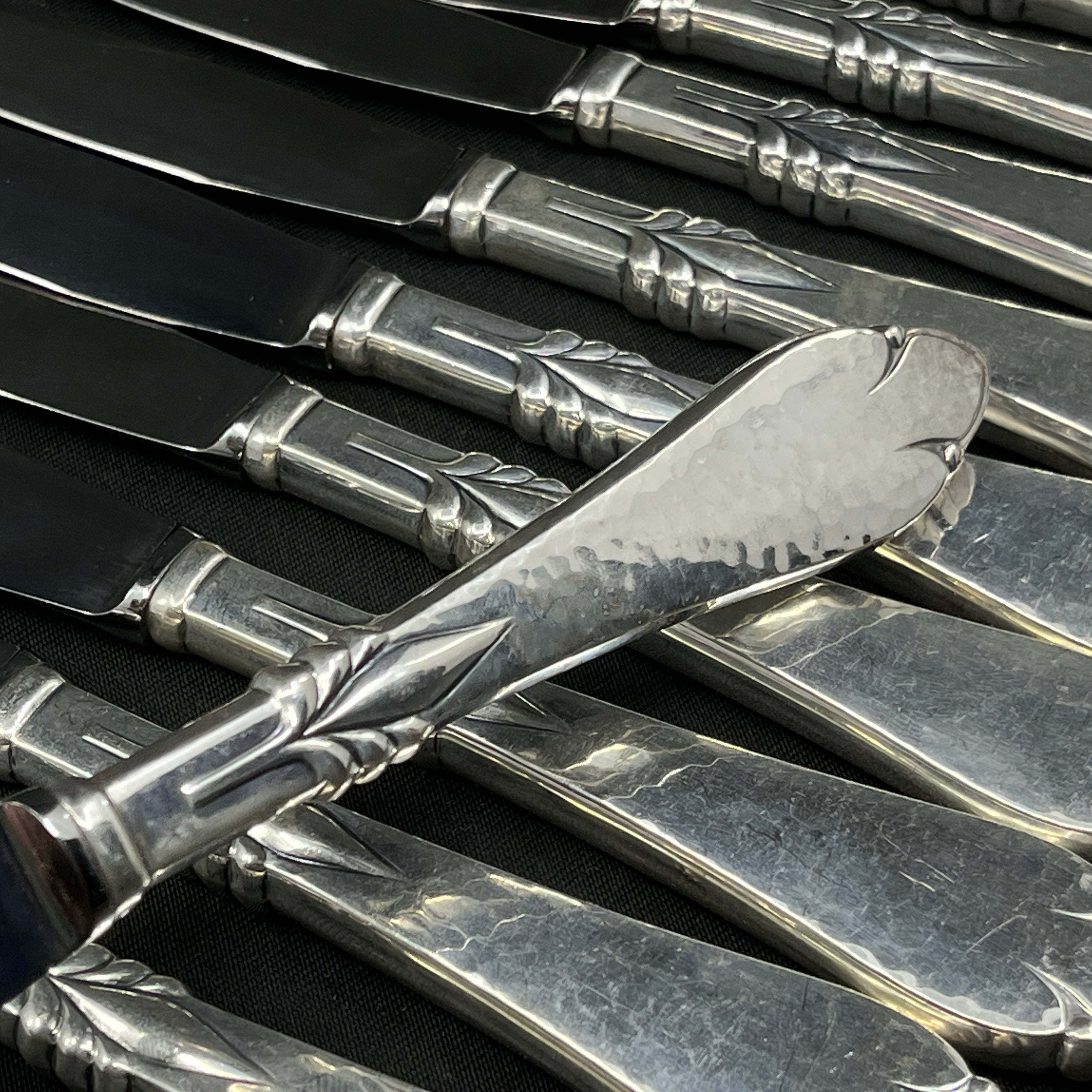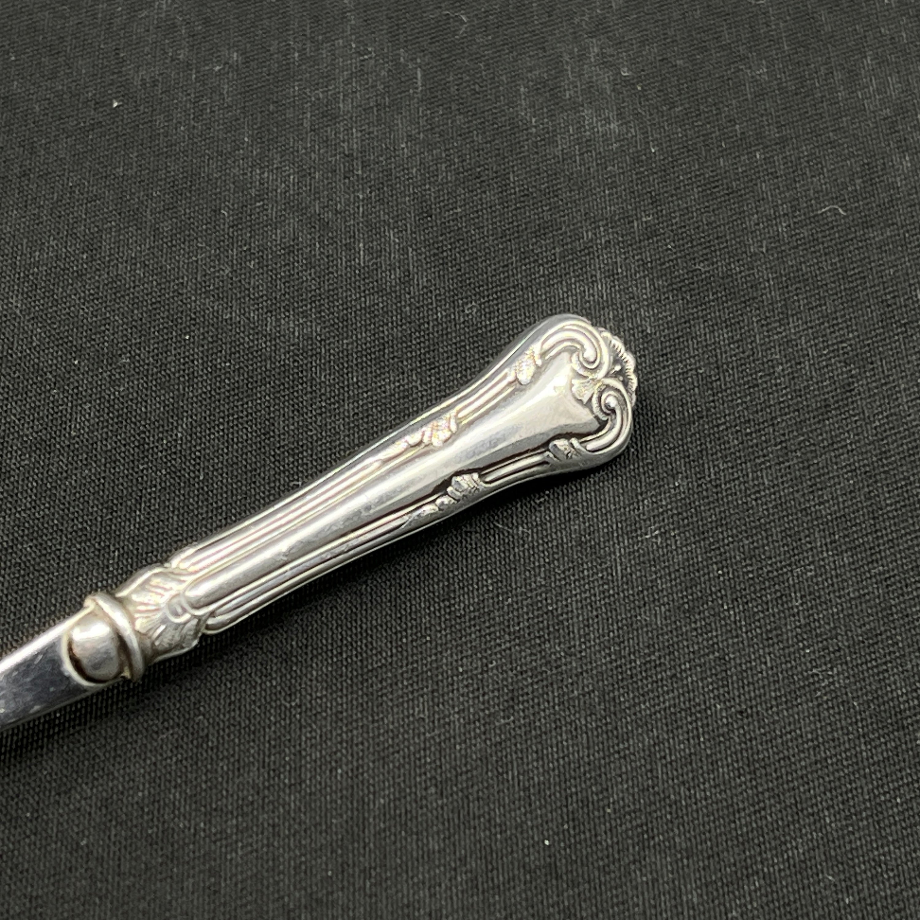 In this category of silverware cutlery you will find, among other things, dinner knives, serving spoons, tea spoons, cheese spatulas, cake spatulas, children's spoons and much more. The items represent a wide spectrum of styles from the over-decorations of the 19th century and the clean lines of Art Deco to the functionalism of the 1950s. Use the filters on the page to narrow your search so that you can quickly find what you are looking for. Among the most prominent designers in the range are Georg Jensen, Hans Hansen and Cohr.