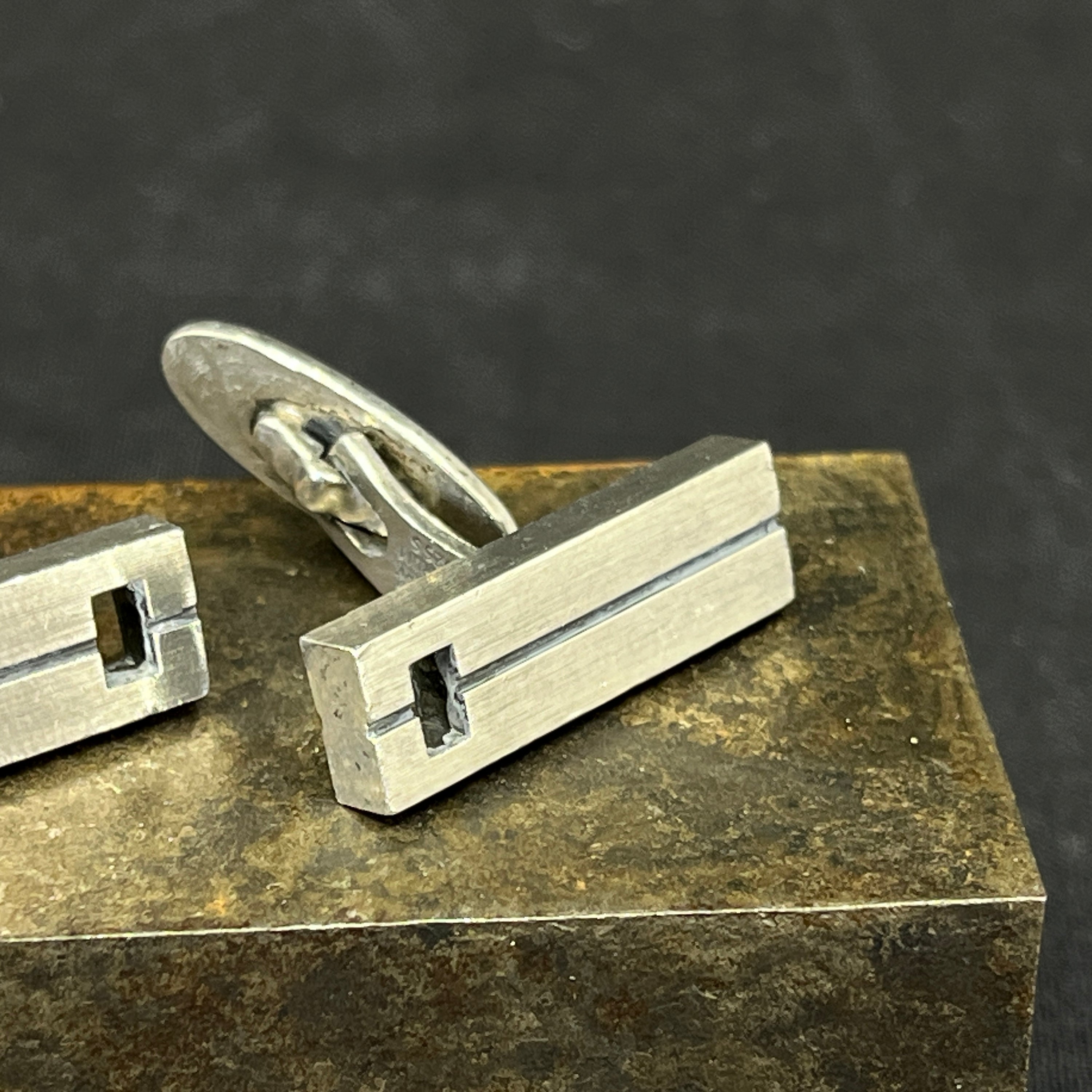 A pair of modern cufflinks in silver